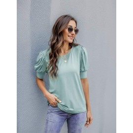 Tooluck Women's Casual Puff Sleeve Tops Crew Neck Loose Blouse Shirts