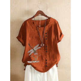 Plus Size Casual Blouse, Women's Plus Polka Dot Print Layered Sleeve Round Neck Oversized Blouse