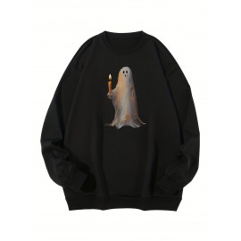 Plus Size, Men's Halloween Cartoon Ghost Print Sweatshirt Fall Winter Crew Neck Pullover For Big & Tall Males, Men's Clothing